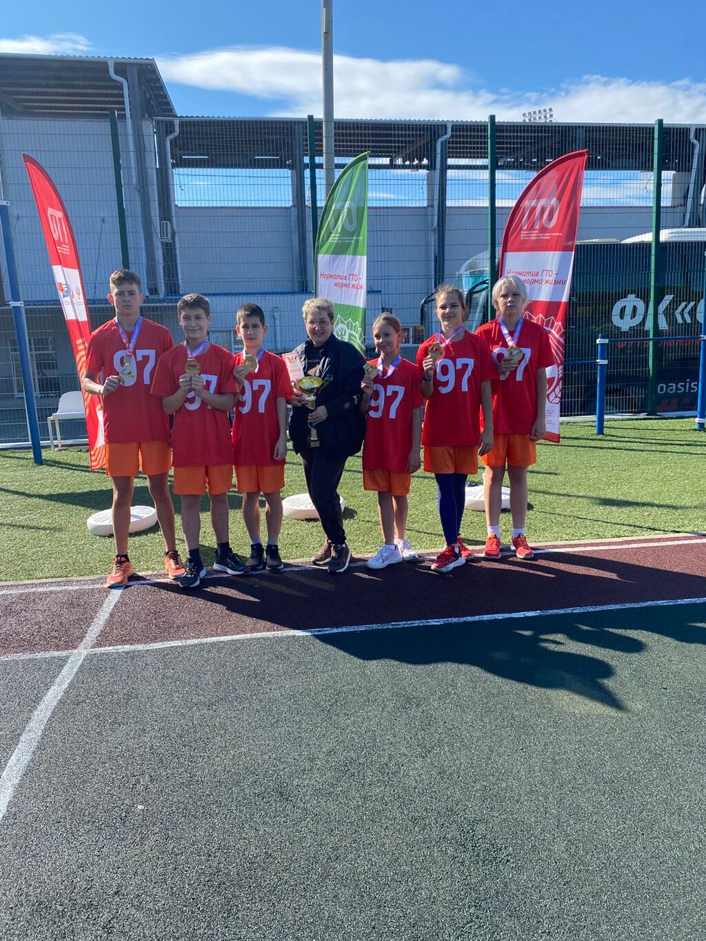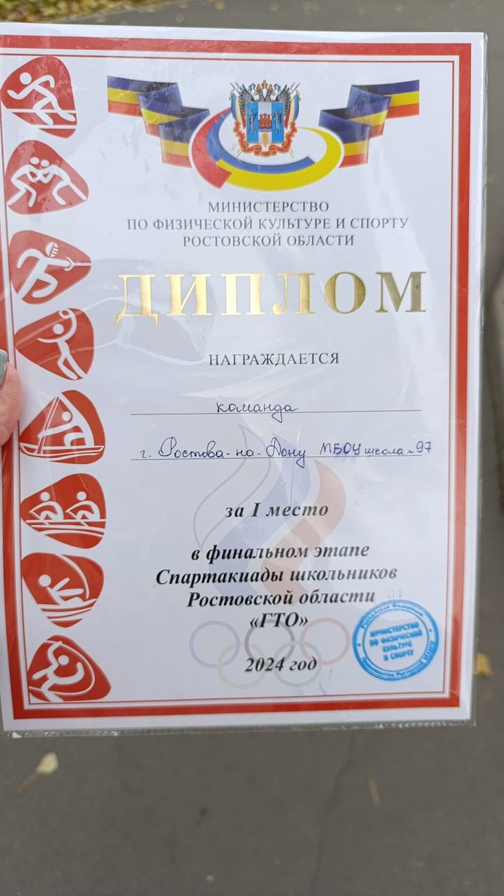 10.10.2025 команда МБОУ"ШКОЛА 97" заняла 1 место в зональном этапе Спортакиады школьников Ростовской области "ГТО"
