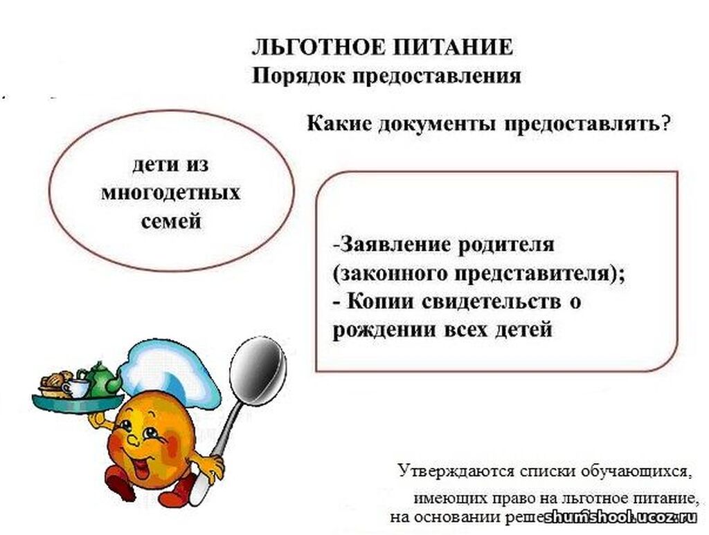 Дети-инвалиды и лица с ограниченными возможностями здоровья получают 2-х разовое бесплатное питание при подтверждении получателем льготы. Основанием для получения бесплатного двухразового питания обучающимися 1-11 классов с ограниченными возможностями здоровья являются: