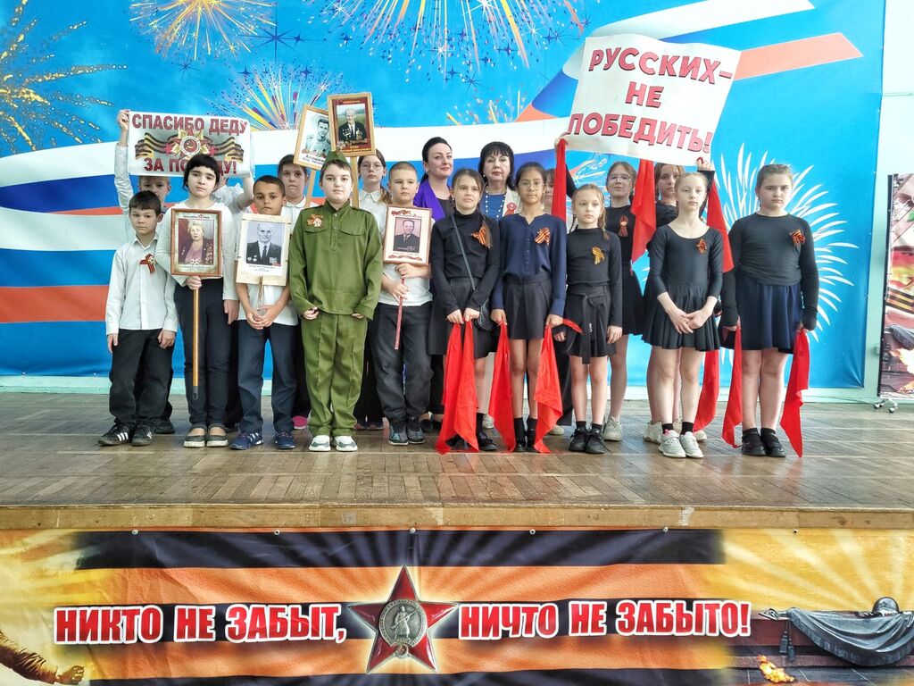 Есть в нашей жизни события, которые переполняют душу радостью, безмерной гордостью и счастьем за всех людей, за всю страну. Таким событием является День Победы нашего великого народа над фашисткой Германией в 1945 году. Это живая победа, обращенная в настоящее и будущее. В нашей школе, из года в год, проходят празднования в честь этого события. 6 мая мы вспоминали о тех, кто ценой своей жизни подарил нам сегодняшний день Был проведен музыкально- литературный праздник «Этот День Победы! ", на котором звучали песни о войне, стихи, показана танцевальная постановка ,,Ты же помнишь, солдат!'- светлая память и вечная слава народу- Победителю! Завершением стало шествие Бессмертного полка. Через века, через года, Помните! О тех, кто уже не придет никогда, Помните!