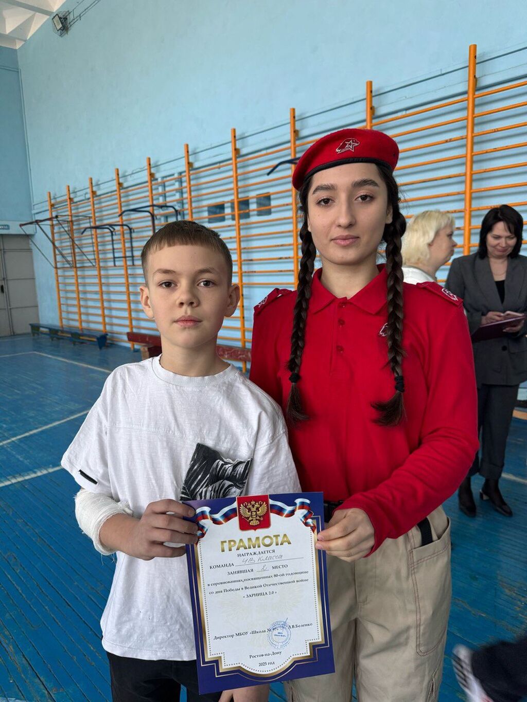 23 апреля 2025 года юнармейцы школы приняли участие в церемонии чествовования героя Великой Отечественной войны Дюминой Надежды Георгиевны. Школьники поздравили дорогого ветерана с 80-летием Великой Победы и заверили,что будут свято хранить память о подвигах героев и будут достойны их великого подвига!