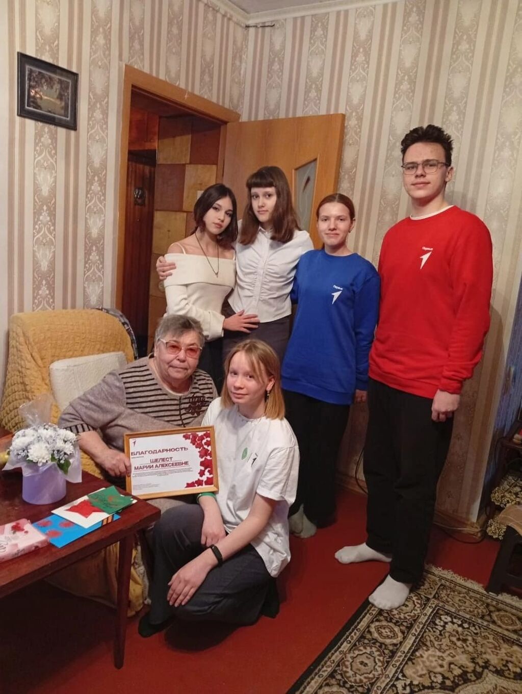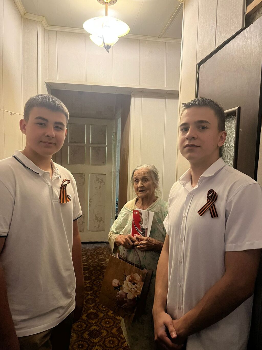 Учащиеся школы поздравили ветеранов Великой Отечественной войны,вдов погибших воинов, тружеников тыла с наступающим Днём Победы! Ученики 9 класса "А"Пенечко А.,Рябухин В. сердечно поздравили Григорьеву О.П. и Горького М.М. с 80-летием Победы в Великой Отечественной войне .
