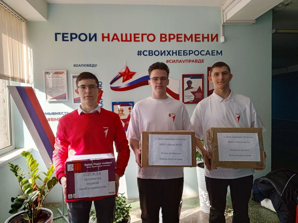 Накануе Дня Защитника Отечества в МБОУ «Школа № 97» прошла встреча с выпускником школы, участником СВО Данилом Сергеевичем. Каждый раз приходя в отпуск, Данил Сергеевич посещает родную школу, и это становится большим событием в жизни нынешних учеников. На протяжении всего дня Данил Сергеевич общается с детьми: проводит беседы, отвечает на непростые вопросы старшеклассников, проводит занятие с юноармейцами и обязательно приходит к ученикам начальной школы, которые его очень ждут. Школьным медиацентром было записано интервью с участником СВО Данилом Сергеевичем, чтобы вся ученичесткая и родительская общественность нашей школы поближе узнала НАШЕГО ГЕРОЯ! В МБОУ «Школа 97» прошла акция «С заботой о Защитниках», которая направлена на поддержание боевого духа бойцов специальной военной операции и оказание им гуманитарной помощи, а ученики начальной школы сделали поздравительные открытки и поделки.