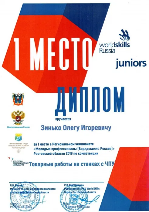 Зинько Олег, ученик 10"Б" занял 1 место "Токарные работы на станках с ЧПУ-Юниоры"
