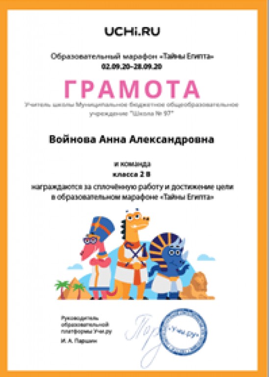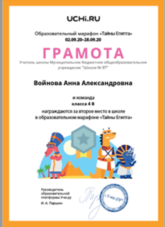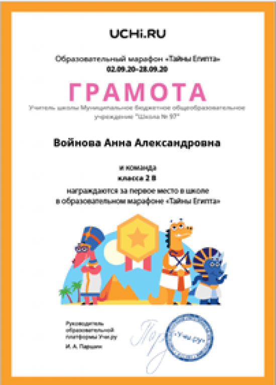 Со 2 сентября по 28 сентября 2020 года на платформе Учи.ру прошёл образовательный марафон «Тайны Египта»