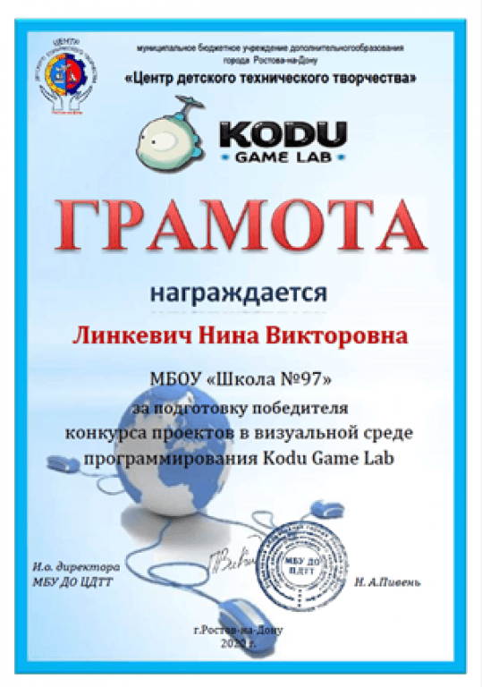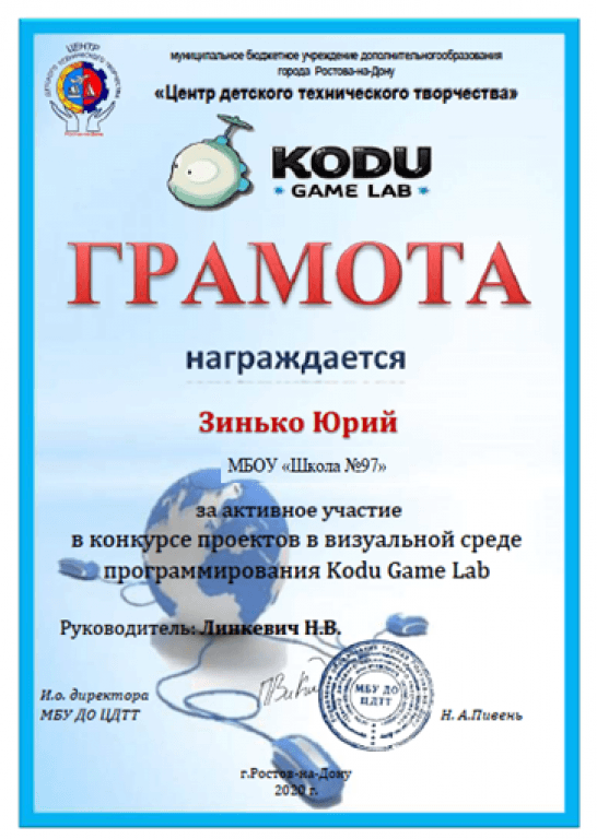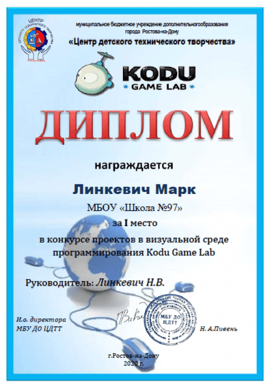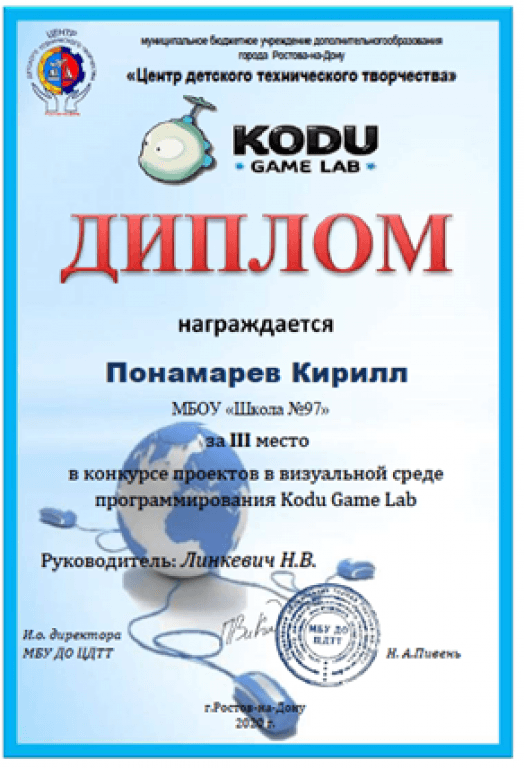 Конкурса проектов в визуальной среде программирования Kodu Game Lab