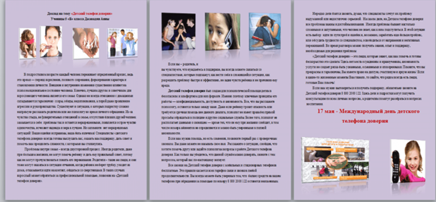«Детский телефон доверия доступен в каждом уголке России» https://youtu.be/Lkjqq8SgzDc