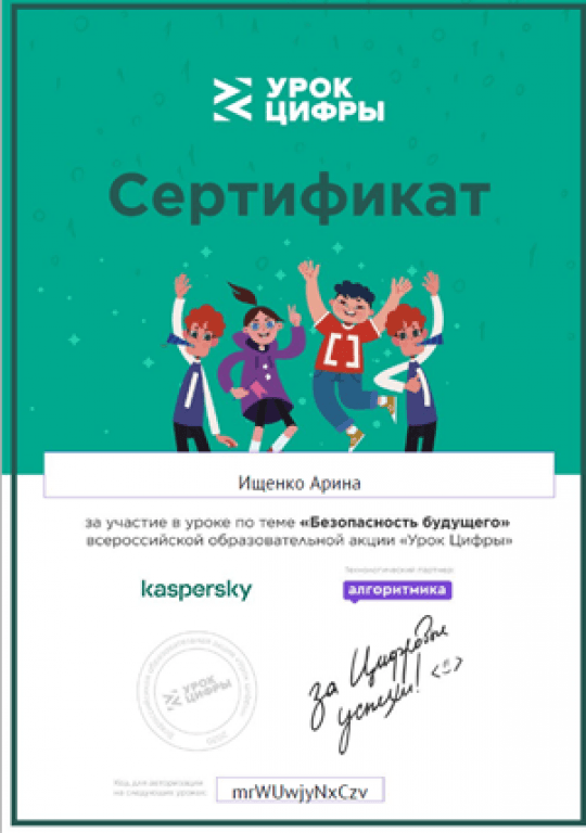 01.06.2020 в 11.00 на сайте проекта урокцифры.рф, в социальной сети «Вконтакте» открытого Урока по кибербезопасности в Международный день защиты детей.
